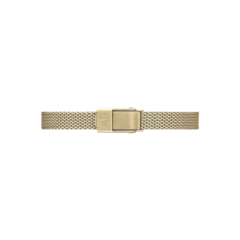 Armbandet i mesh med tygliknande struktur har samma delikata charm som ett elegant armband, men är utbytbart, vilket ger extra mångsidighet. Precis som många av våra klockor är Quadro Mini tillverkad i slitstarkt 316L rostfritt stål med högkvalitativ guldbeläggning. Bär den som klocka och njut av den som ett utsökt smycke – en perfekt kombination av elegans och funktion.