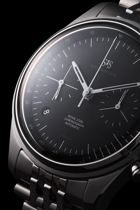 Den mattsvarta urtavlan och den raffinerade takymeterskalan leker med ljus, skugga och proportioner, kännetecken för Claesson Koivisto Runes arkitektoniska tillvägagångssätt. En subtil markering av siffran 86 hyllar Sjöö Sandströms grundår och den årliga traditionen att endast producera 86 exemplar.